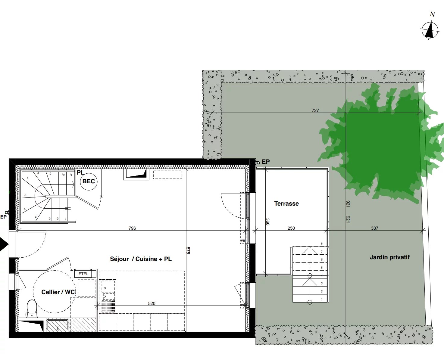 Je vous présente aujourd’hui cette belle maison T4 de 82,71 m² sur 2 niveaux composée au rez de chaussée d’une belle pièce à vivre avec cuisine ouverte de 35,47 m² donnant sur la terrasse et jardin exposé Est de 47,79 m², un cellier et un wc.