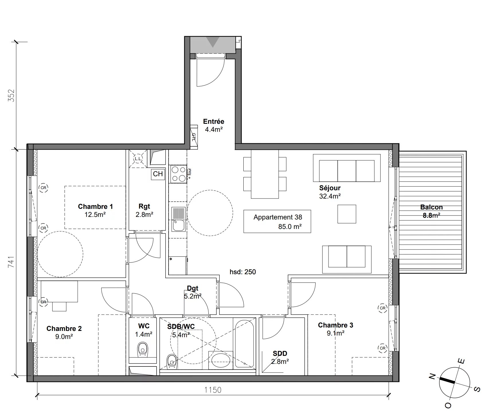 Le bien se compose d’une entrée, un séjour avec cuisine ouverte aménagée ouvrant la terrasse exposée sud, 3 chambres lumineuses, une salle de douches et une belle salle de bains avec wc.